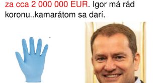Núdzový stav a COVID sa ukazuje ako priestor na kšefty. 31.10.2020 zverejnená v centrálnom registri zmluva na nákup rukavíc za 960 000 EUR od firmy Pharmacomp, so sídlom v Žarnovici. odkaz na zmluvu: https://crz.gov.sk/data/att/2471430.pdf Zmluvu podpisoval na strane štátu Ján Rudolf a na strane firmy Ján Oslanec. 28.10.2020 bola …
