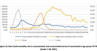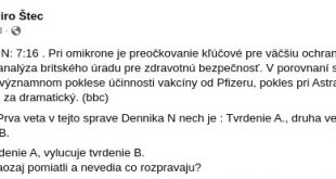 Vedec Miroslav Štec na svojom FB upozorňuje na zlú situáciu v najzaočkovanejšich štátoch. Vedec píše: Vykladné skrine Pfizeru – Izrael a Portugalsko udávajú tieto týždenné trendy: Izrael: týždňový nárast infekcii + 43%, nárast úmrtí + 143 %, 8 úmrtí na milión, Portugalsko: týždňový nárast infekcii +28%, nárast úmrtí +56%, 26 …