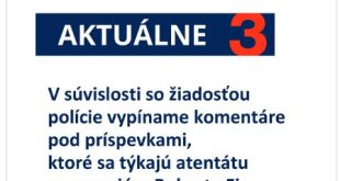 Náš komentár: Diskusie cenzurujú a vypínajú hlavne s cieľom zabrániť šíreniu nechcených informácií. Vlastného uvažovania, ktoré podkopáva množstvo podivnosti v prípade atentátu na Fica. Ďalšie: https://www.inenoviny.sk/fotograf-z-ficovho-atentatu-vytvoril-podivne-rozmazane-foto-a-vo-februari-dostal-vyse-80-000-eur-od-statu/ https://www.inenoviny.sk/fotky-a-video-z-atentatu-na-fica-nesedia-boli-nahravane-v-inom-case-ludia-ti-isti-herci/ https://www.inenoviny.sk/lekar-s-50-rocnou-praxou-o-atentate-na-fica-nieco-tu-velmi-smrdi/ https://www.inenoviny.sk/zahady-v-pripade-atentatu-na-roberta-fica/ https://www.inenoviny.sk/ficovi-netrebalo-miliony-eur-na-reklamu-je-uz-spasitel-svetoveho-formatu-ako-hovori-daniel-bombic/ https://www.inenoviny.sk/fico-a-blaha-hecovali-dav-a-ten-krical-prezidentka-je-kurva-prostitutka/ https://www.inenoviny.sk/fica-postrelili-cca-1500-ale-miting-mal-byt-az-1630-preco-boli-uz-o-tretej-ludia-na-namesti/ https://www.inenoviny.sk/kamil-jakub-akonahle-sa-vyhlasil-strajk-proti-who-fica-postrelili-a-rokovania-nrsr-su-prerusene/ https://www.inenoviny.sk/aj-majitel-dracika-sa-pyta-preco-neviezla-fica-zachranka-do-nemocnice-ale-ochranka-pomylili-sa-a-sli-najprv-do-hospicu-a-nie-do-nemocnice/ Send article as PDF