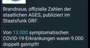 Rakúska štátna televízia ORF 10.11.2021 oficiálne napísala, že: “ z 13 000 COVID prípadov, ktoré boli sprevádzané symptómami, bolo 9000 očkovaných, čo predstavuje celých 69,2%“ zdroje: https://orf.at//stories/3236061/ https://t.me/rbk_2020/63419 https://www.facebook.com/bianca.vitalosova/posts/4882945701736575 Send article as PDF