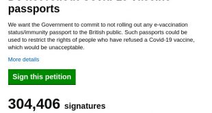 Ľudia vo viacerých štátoch vyjadrujú odpor voči totalitným praktikám, ktoré ešte na jar boli konšpiráciou. V Anglicku sa podpísalo vyše 300 000 ľudí proti použitiu COVID pasov a tým musela byť petícia prerokovaná parlamentom. zdroj: https://petition.parliament.uk/petitions/569957 Petícia je proti obmedzovaniu práv občanov podmienených očkovaním, alebo testom, čo je kšeft farma …