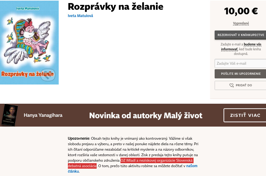 Na Martinuse sa píše, že to, čo sa zarobí na tejto knihe, pôjde mimovládkam ako je Slovenská debatná asociácia a OZ Mladí.