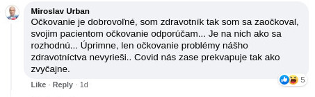Hlavný odborník na zdravotníctvo v Republike – Miroslav Urban však je očkovaný a očkovanie odporúča aj svojim pacientom.