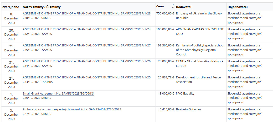 https://crz.gov.sk/2171273-sk/centralny-register-zmluv/?order=22&art_zs2=&art_predmet=&art_ico=&art_suma_spolu_od=&art_suma_spolu_do=&art_datum_zverejnene_od=01.12.2023&art_datum_zverejnene_do=08.04.2024&art_rezort=0&art_zs1=Slovensk%C3%A1%20agent%C3%BAra%20pre%20medzin%C3%A1rodn%C3%BA%20rozvojov%C3%BA%20spolupr%C3%A1cu&nazov=&art_ico1=&search=