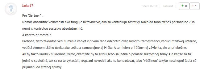 Nanajvýš zaujímavé je, že o takýchto sumách nevie starosta a ani kontrolór. To veľmi smrdí. Ak Hrčka nevedel, že takto miznú milióny, tak nemal čo starostovať. Toto je bežná prax, že takto sa rozkrádajú verejné financie, starosta, kontrolór, účtovníci na úradoch, školách…