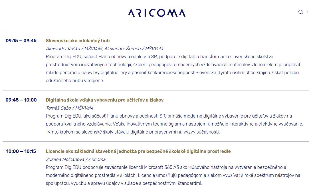 https://www.aricoma.com/sk/akcie/aricoma-eduhub-2025/program#detail