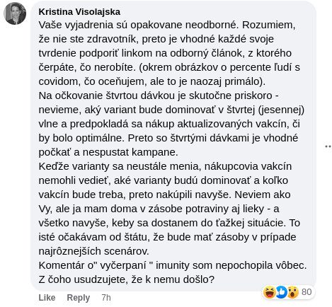 Daniša skritizovala na jeho facebooku Visolajského manželka, tiež doktorka. Fanatická propagátorka experimentálnych vakcín a „silne“ veriacá žena.