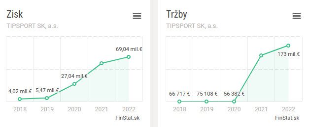 Tu si môžte pozrieť porovnanie príjmov a ziskov Jednotyk a stávkovej kancelárie Tipsport.