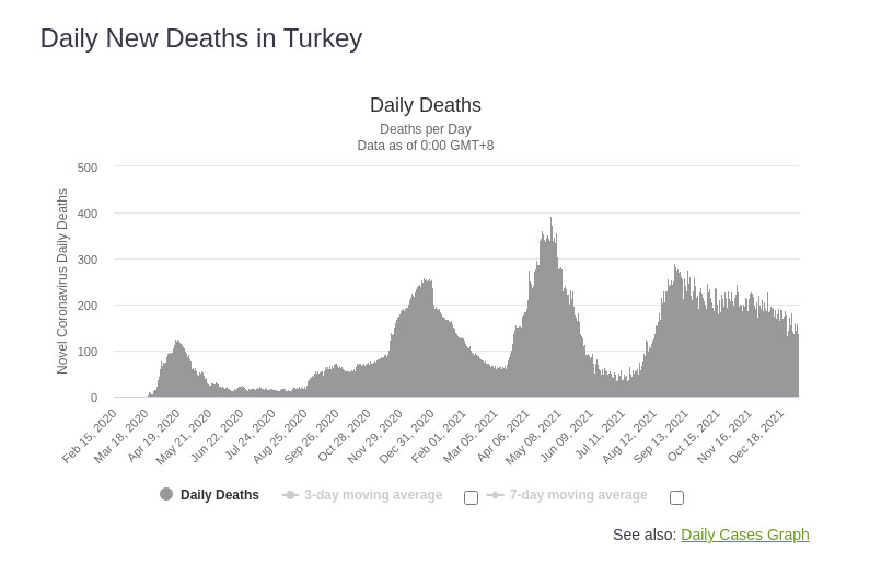 V Turecku podávajú vakcíny Sinovac, Turcovac a Biontech/Pfizer. V Turecku je jednou dávkou očkovaných až vyše 91% ľudí nad 18 rokov. Dvoma dávkami vyše 80% ľudí nad 18 rokov.