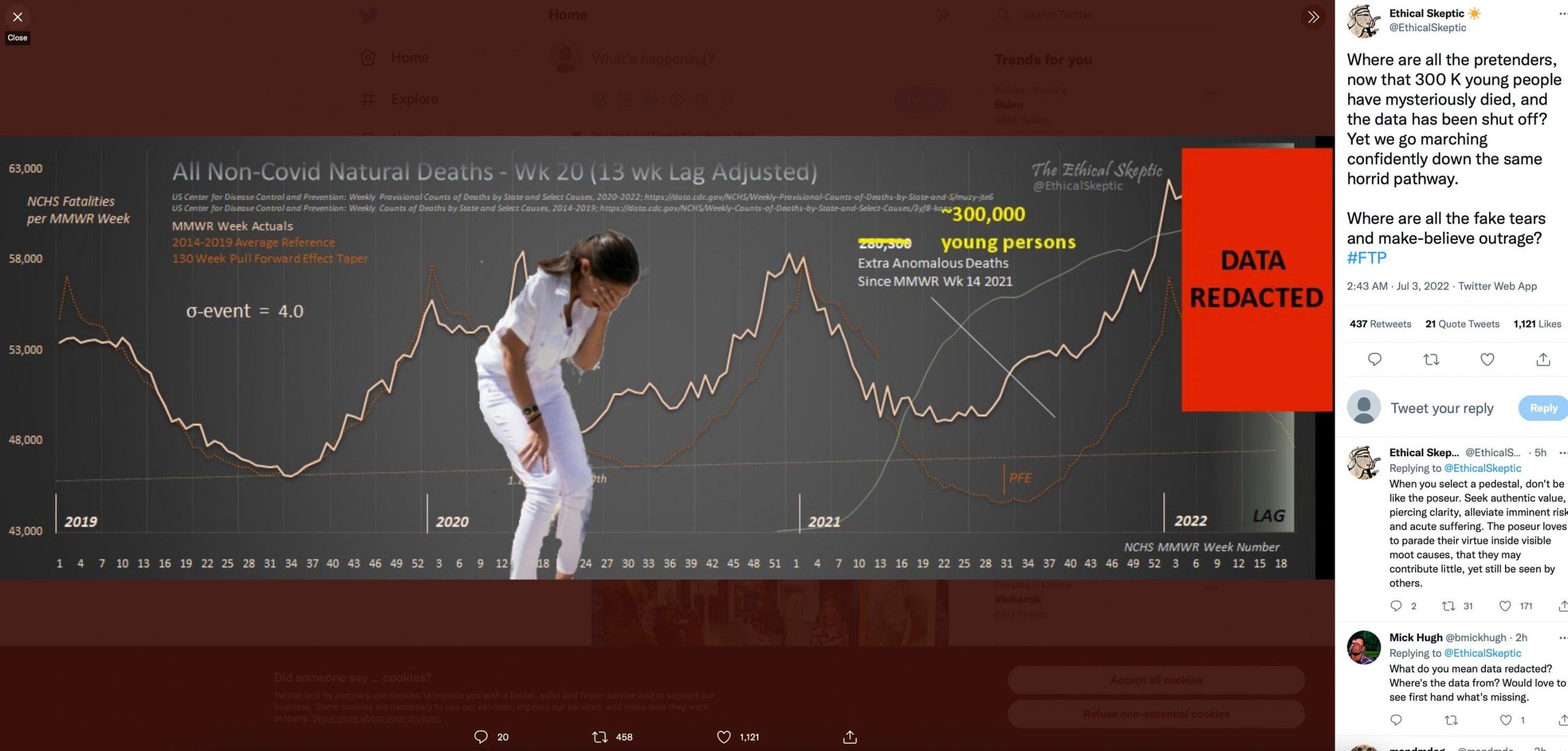 300.000 nadmerných nekovidových úmrtí mladých ľudí v USA od 14 týždňa 2021.