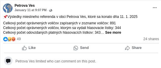 https://www.facebook.com/PetrovaVes.sk/posts/pfbid02bRXoFLcBeVoQQuXJCXS71oV9TJVNthDnRCkTkmQd117GE7Ue2i3u2DMSTbjoKtTKl