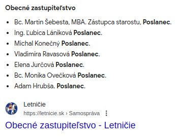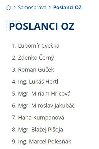 Poslanci obecného zastupiteľstva Petrová Ves.