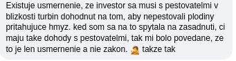 Hmyz je priťahovaný k turbínam, čo zvyšuje riziko ich kolízie s rotujúcimi lopatkami.