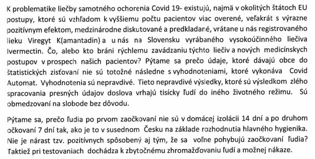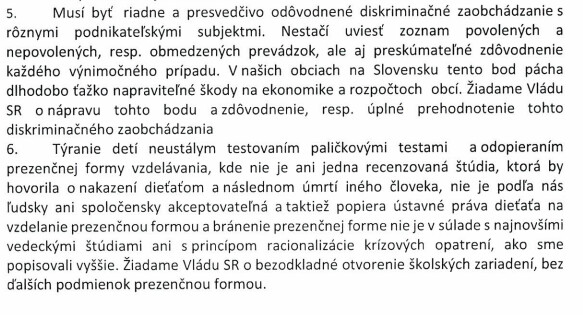 Niektoré časti listu, ktorý bol zaslaný vláde, prezidentke. Pre plné znenie si prečítajte priložený odkaz, alebo súbor.