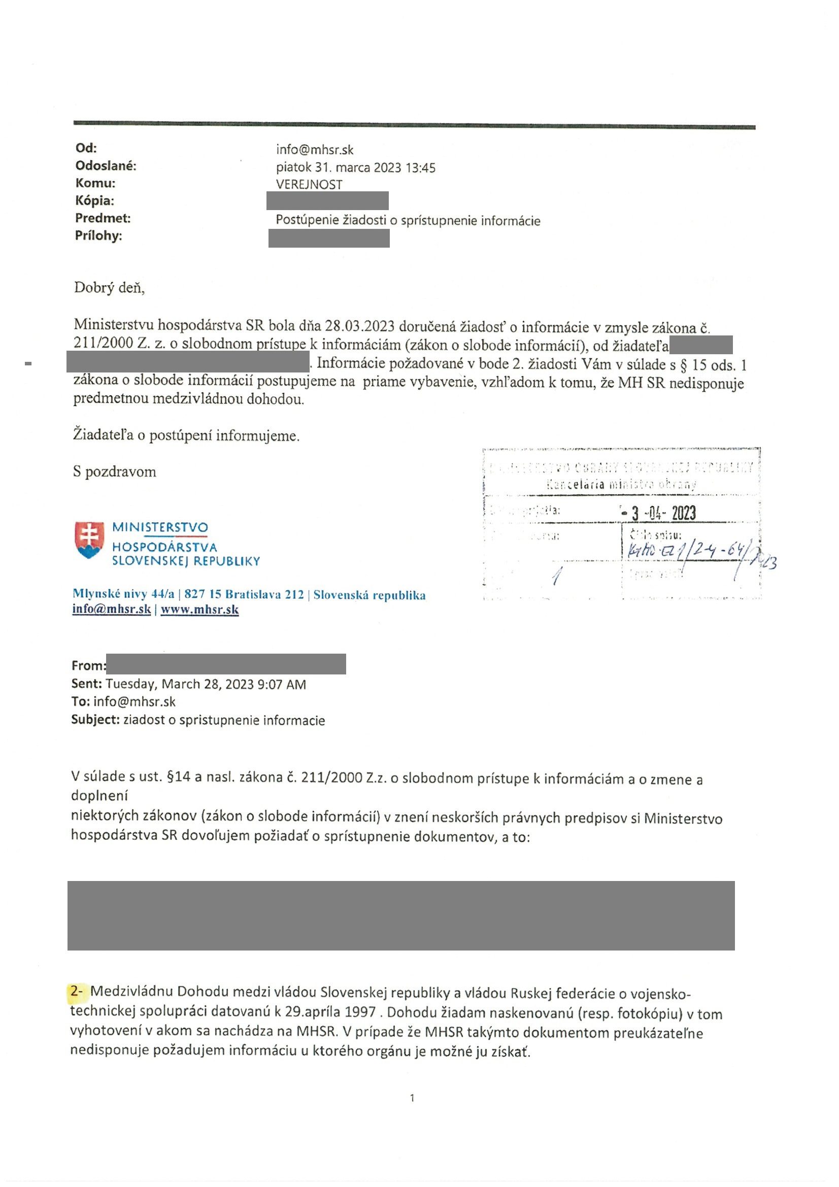 MH SR vypýtali. Zmluvu nám nedali. Nemajú. A odstúpili našu žiadosť na Ministerstvo