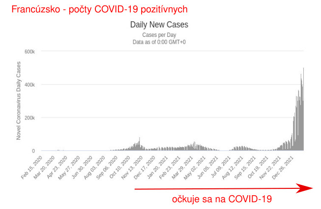Vo Francúzsku dosahujú rekordy pozitívnych prípadov na COVID-19, násobne vyššie čísla ako keď sa neočkovalo. Zaočkovaných je tam skoro 80% populácie, posilňovaciu dávku dostalo vyše 40% ľudí.