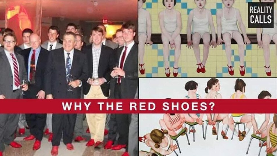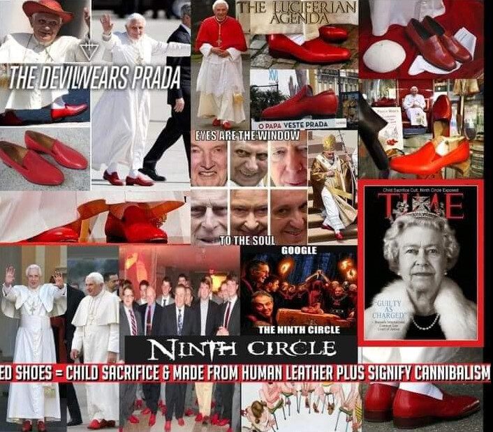 Dedeček mal v deň zabitia viacerých mladých ľudí červené topánky. Červené topánky v okultných kruhoch symbolizujú ľudskú obetu, kanibalizmus… takéto fotky mal aj Podesta vo svojom dome, ktorý je spájaný so satanizmom a pedofíliou.