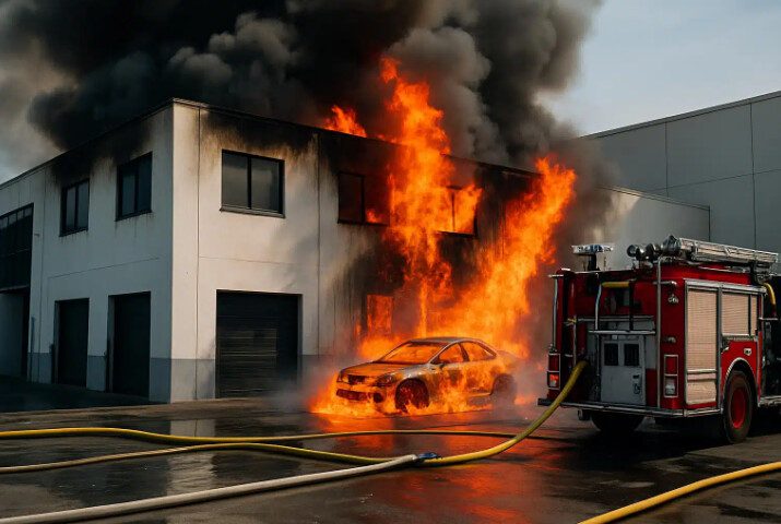 Tieto autá a batérie sú tako horľavé, ako vidieť na fotke, že aj keď auto sa nedotýka celej budovy, obrovská teplota horenia elektromobilov preskočí aj na pomerne nehorľavé materiály a tie začnú horieť, lebo horia pri vyššich teplotách a práve tie vznikajú pri horení elektrických áut, nie spaľovacích automobilov. Preto ak máte elektrické auto pri dome alebo v dome, je podstatne väčšia pravdepodobnosť, že vám vyhorí celý dom, ako keby horel spaľovak.