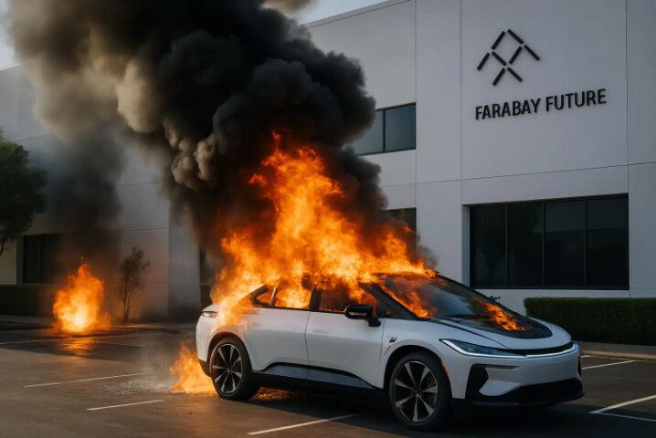 Výbuch a požiar elektrického SUV zasiahli dvojposchodovú budovu v sídle spoločnosti Faraday Future v Los Angeles, čo vyvolalo okamžitú reakciu hasičského zboru v Los Angeles a mestskí inšpektori budovu označili červenou značkou. Hasiči požiar uhasili za približne 40 minút a podľa hovorcu LAFD neboli hlásené žiadne zranenia.