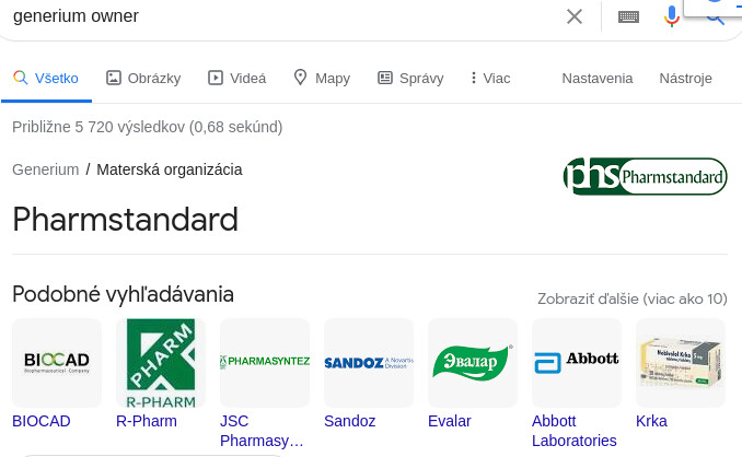 Materskou spoločnosťou firmy Generium je Pharmstandard.