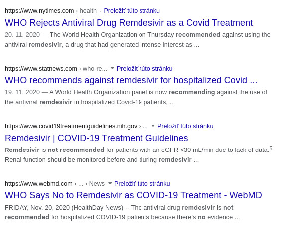 Samotné WHO už rok neodporúča Remdesivír na ličebu COVID-19: