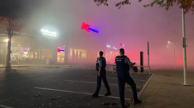 Neďaleké obchody boli zatvorené, okoloidúci hovorili, že boli evakuovaní z Kmartu, Dominosu a Burger Fuel.