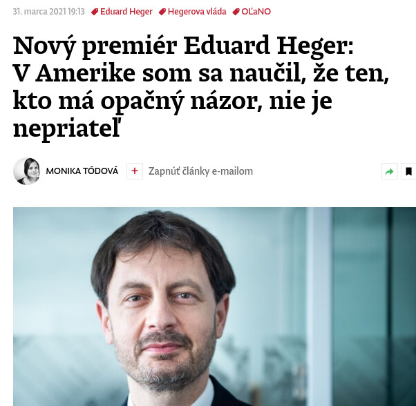 Na hlavnespravy.sk, ktoré sú pod vplyvom rodiny Čarnogurských vyšiel ospevný a hlavne nekritický článok na Eduarda Hegera.