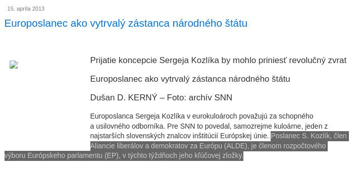 Kozlík bol členom liberálnej frakcie EÚ, podobne ako je aj Progresívne Slovensko.